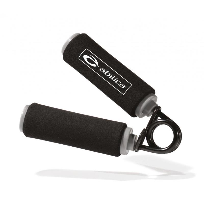Handgrip med 5,5 mm stålfjær og håndtak belagt med mosegummi. Styrker hånd, fingre, håndledd og underarm. Hard motstand, ca. 35 kg. Selges i stk.