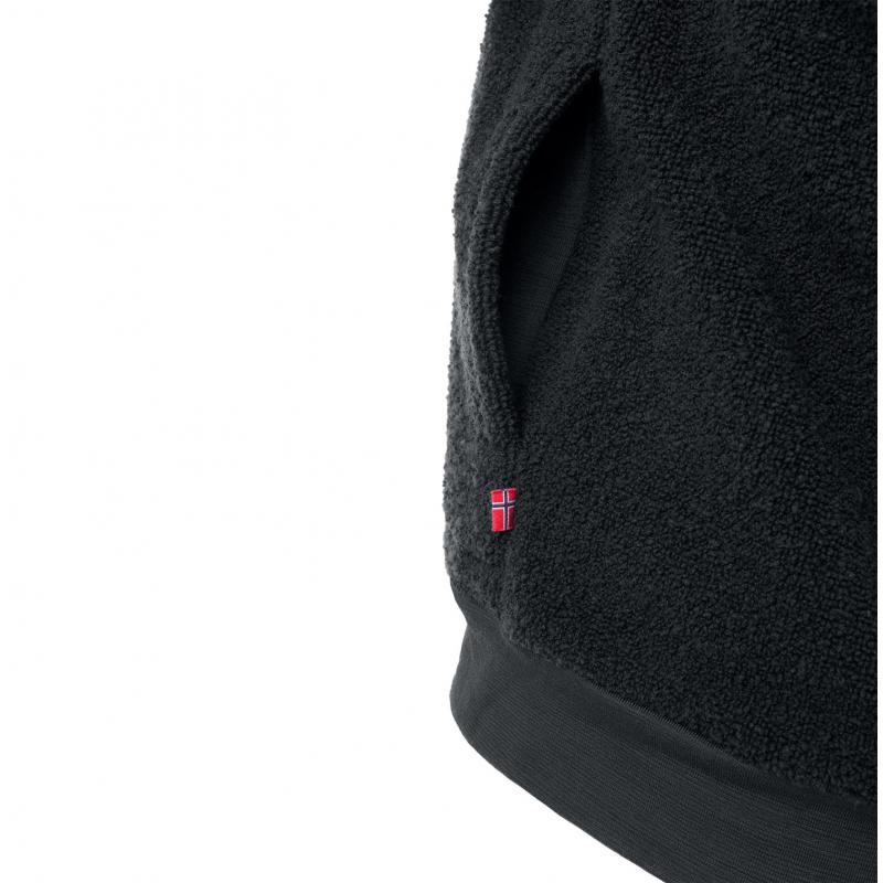 ReBorn Wool Terry Jacket er en jakke i ullfrotté med små løkker på utsiden. Den har høy krage, dype lommer på sidene og en romslig passform. Den har en fleece-lignende innside med børstet ull som isolerer godt, og ullen er resirkulert fra overskuddsmateriale fra vår egen fabrikk i Estland. Vi har sett på de mest bærekraftige løsningene, og logo og zip puller er laget av fiskeskinn. Dette er en myk og behagelig jakke som passer godt til både friluftsliv og til hverdags.