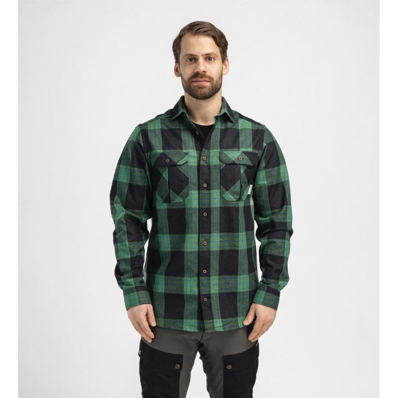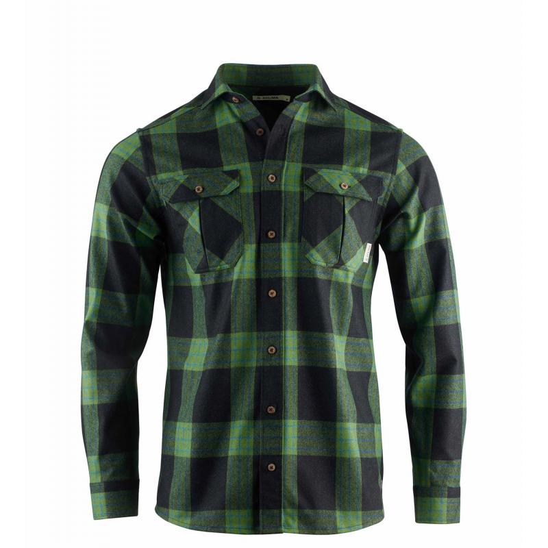 ReBorn Wool Shirt har lange armer og mansjetter med knapp. Det er to frontlommer med knapper og en Aclima logo på venstre side. Passformen er løs og ledig, som en praktisk friluftskjorte. ReBorn er friluftskjorter til røft bruk, laget av resirkulert ull av avkapp fra vår egen fabrikk i Estland.
