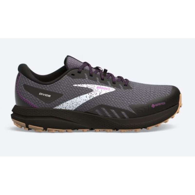 Oppdag naturen uansett værforhold med Brooks Divide. Disse trailskoene har en robust, fleksibel overdel i mesh som gir optimal ventilasjon og samtidig beskytter mot stein og gjørme. Den lette og vanntette GORE-TEX® Invisible Fit-membranen holder føttene tørre under alle forhold, mens DNA LOFT-mellomsålen gir myk og energigjenvinnende demping i alle typer terreng. Den mønstrede yttersålen i slitesterk gummi gir utmerket grep på både fast og løst underlag, noe som gjør disse skoene pålitelige på dine utendørsopplevelser.