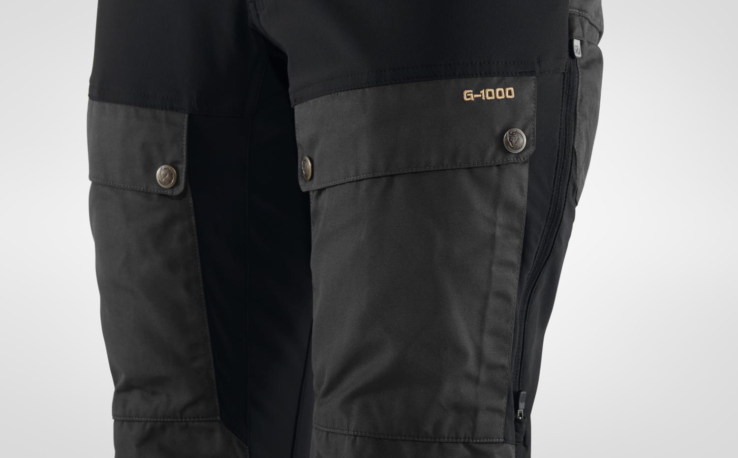 Svært slitesterk turbukse i Curved Fit for optimalisert passform. Ekstra vidde over sete og lår, med en markert midje slik at man unngår glippe i midjen bak. Buksen er tilpasset friluftsbruk hvor bevegelsesfrihet og slitestyrke er like viktig. G-1000 Eco på setet, forsiden av bena, og knærne og nedest på innsiden av bena. Setet og knærne er ytterligere forsterket med ekstra sterke sømmer, og innsiden av beina har dobbelt stofflag for å tåle slitasjen fra fjellstøvlene. En ventilasjonsåpning med glidelås fra kneet til hoften, samt en åpning nedover leggen slipper ut overflødig varme. Buksen har også forlenget gylf for ekstra ventilasjon. To benlommer med klaff, den ene med glidelås og den andre med nettinglomme for oppbevaring av småting. Høyt plasserte stikklommer slik at innholdet holder seg på plass også når du bøyer deg. Stroppejustering nederst på beina, samt kroker til å feste i fjellstøvler eller skisko.
