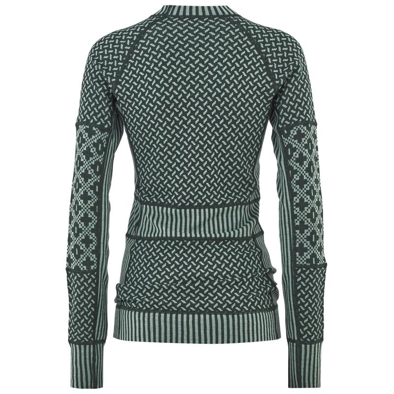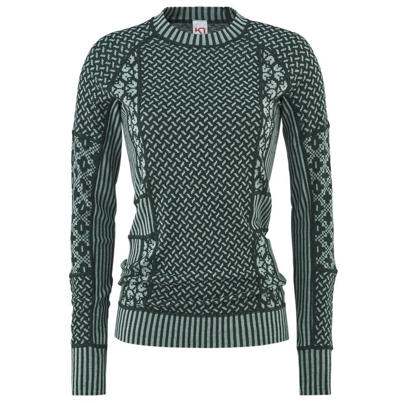 Kari Traa Smekker Langermet Ulltrøye er en lett baselayer overdel i 100% merinoull. Paneler i jacquardstrikk med forskjellig mønster skaper et flatterende uttrykk og en leken look, mens den myke ulla som er varm og lukthemmende holder deg god og tørr i selv de tøffeste situasjonene.