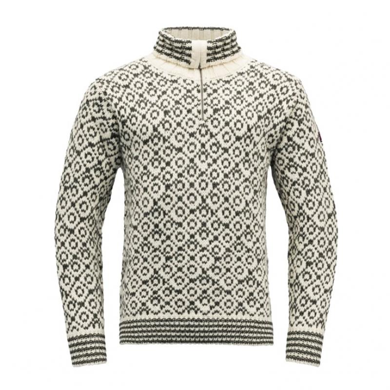 Devold® Svalbard er ikke bare en av Devolds desidert varmeste gensere, den har også eksplodert i popularitet de siste årene. Designer Olmes Carretti designet den for å se autentisk håndlaget ut, og den velkjente klare rødfargen er hentet fra italienske Carrettis nabolag. Han vokste nemlig opp rett ved Ferraris originale fabrikk. 100 % ren, ny ull fra norske sauer. Genserne med glidelås i halsen har hakebeskytter som hindrer gnaging fra glidelåset. Strikket i en tofarget full-Jacqard. Behagelig ribb nederst på kropp og ermer.